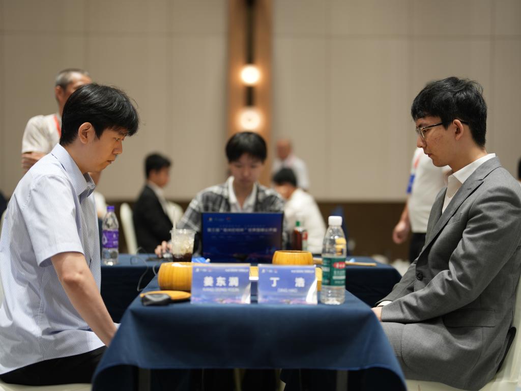 更大的逆轉(zhuǎn)則出現(xiàn)在丁浩與韓國隊姜東潤之間,丁浩官子階段弈出問題手,令對手勝率一度接近100%。但在全場其余各盤均已戰(zhàn)罷時,丁浩仍在頑強堅持。時間壓力之下,姜東潤錯判局面,導(dǎo)致雙方重回均勢,此后他又錯過制造“四劫循環(huán)”的良機,雙方鏖戰(zhàn)至361手,丁浩宣告勝利。