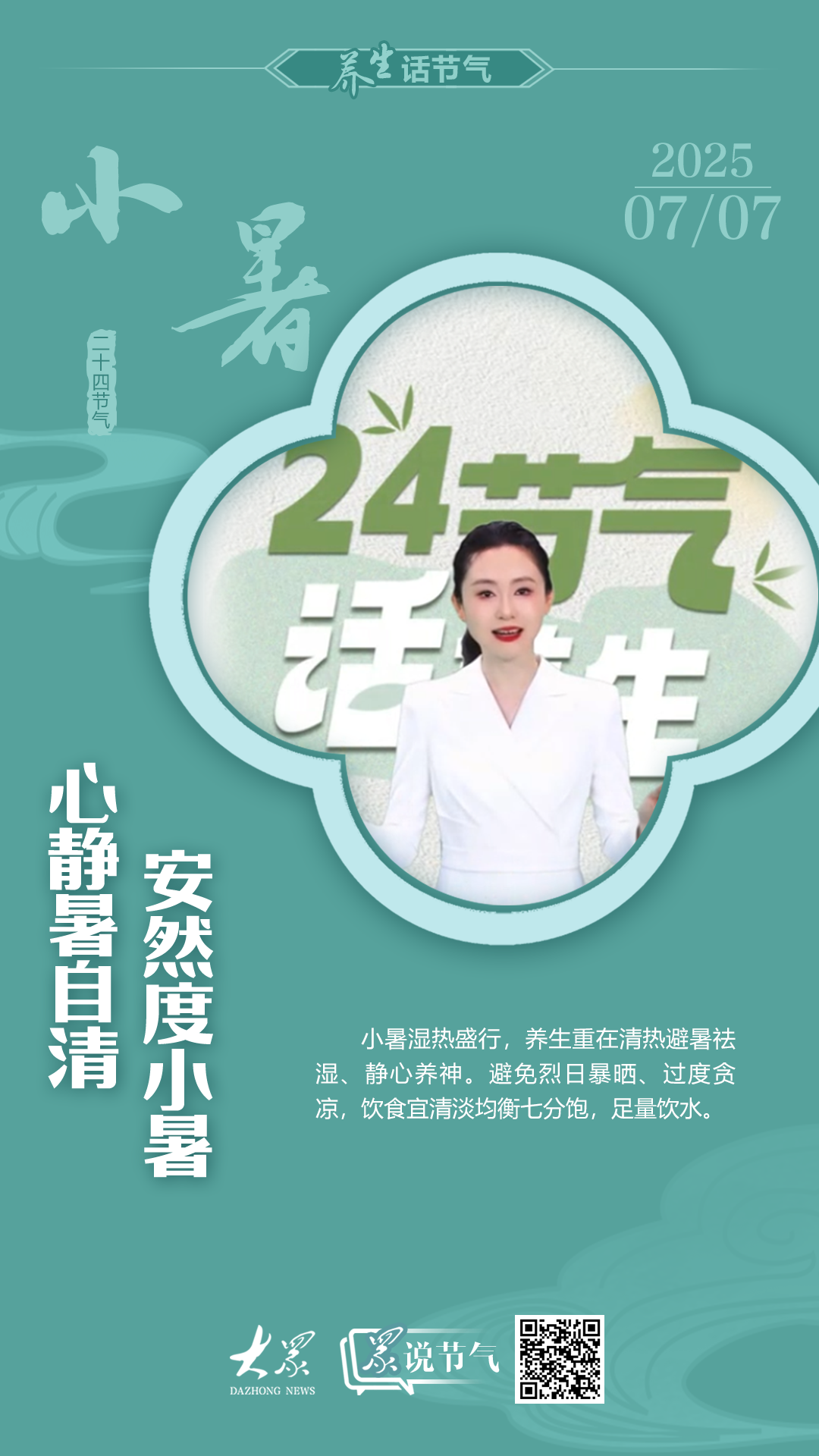 “小暑大暑,上蒸下煮”,一年中最炎熱的時候到來了。此時,暑濕之邪極易乘虛而入,損傷陽氣,引發(fā)中暑、心腦血管疾病及腸道傳染病等,養(yǎng)生應(yīng)以清熱避暑祛濕為重。