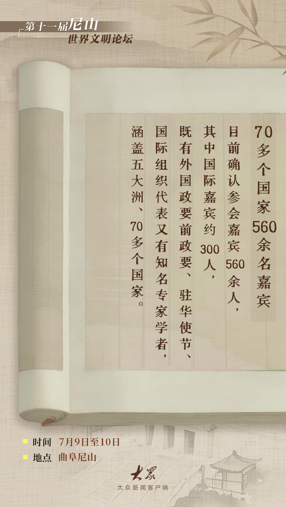 7月9日至10日,第十一屆尼山世界文明論壇在山東曲阜舉辦,本屆論壇以“各美其美·美美與共——文明間關(guān)系與全球現(xiàn)代化”為主題,匯聚來自70多個國家的560余位嘉賓。通過這些亮點搶先感受這場文明對話的年度盛會,聆聽世界文明交融的現(xiàn)代回響。