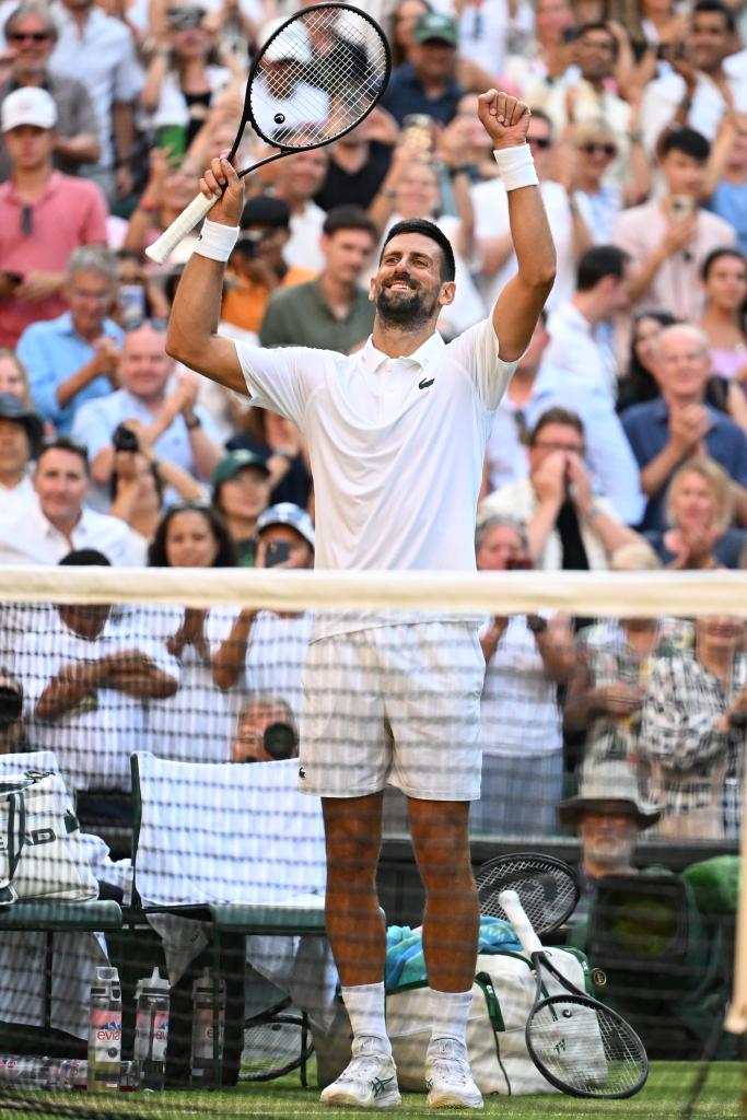 7月9日,焦科維奇在比賽后慶祝。新華社記者 趙丁喆 攝