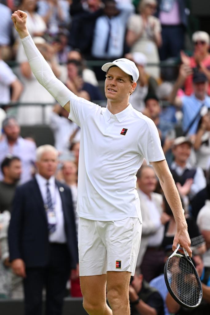 7月9日,辛納在比賽后慶祝。新華社記者 趙丁喆 攝