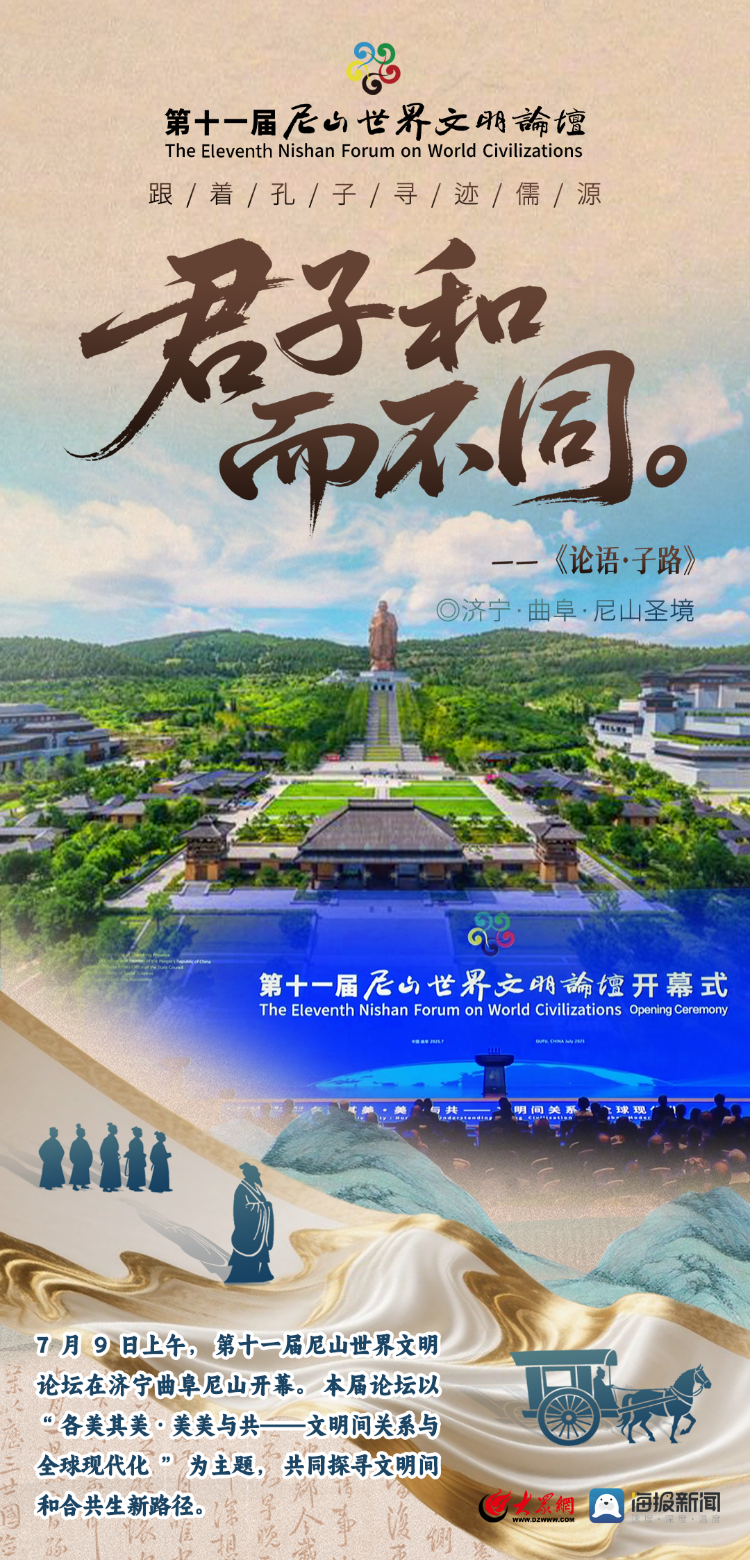 7月9日上午,第十一屆尼山世界文明論壇在濟(jì)寧曲阜尼山開(kāi)幕。大眾網(wǎng)濟(jì)寧特別策劃制作《跟著孔子尋跡儒源》系列海報(bào),為您提供一份獨(dú)特的“文化導(dǎo)覽圖”,邀您開(kāi)啟一場(chǎng)沉浸式的儒源尋根之旅!