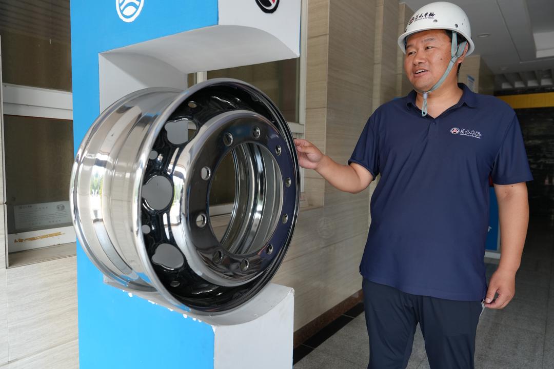 “這是我們自主研發(fā)的25公斤重輕量化車輪,也是全球最輕的鋼質(zhì)車輪,比46公斤標(biāo)準(zhǔn)車輪減重21公斤?!必懺囕喍麻L(zhǎng)胡愛君介紹。