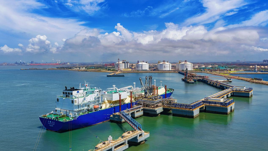 配套建設(shè)1座26.6萬立方米LNG接卸泊位和1座5萬立方米LNG裝船泊位,年通過能力650萬噸。碼頭主體已完工,輸氣管網(wǎng)鋪設(shè)工作正同步推進(jìn),計劃2025年底投用。