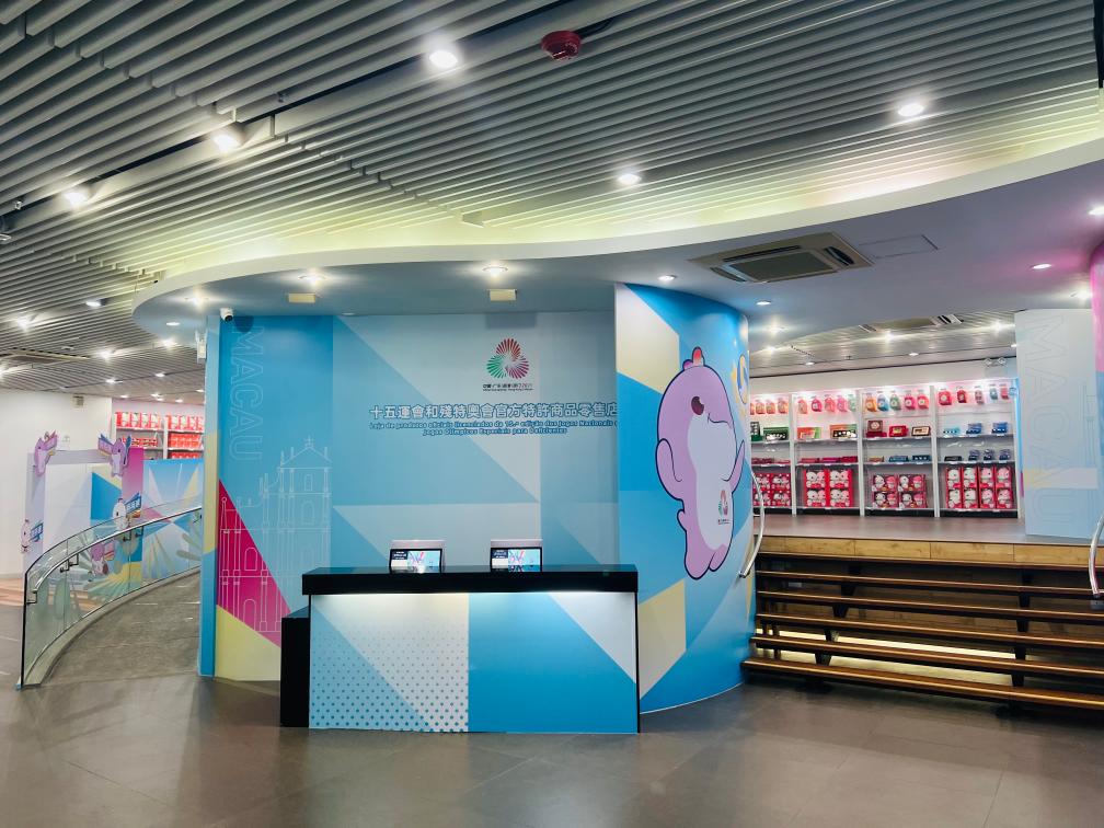 首間十五運(yùn)會(huì)和殘?zhí)貖W會(huì)澳門(mén)賽區(qū)官方特許商品零售店設(shè)于塔石體育館展覽廳,是澳門(mén)賽區(qū)的官方旗艦店。店內(nèi)展示及發(fā)售多款以吉祥物“喜洋洋”和“樂(lè)融融”為主題的官方特許商品,涵蓋玩偶、紀(jì)念徽章、生活用品、工藝品等,現(xiàn)場(chǎng)還設(shè)有打卡拍照裝置,打造沉浸式體驗(yàn)空間,讓市民旅客共享十五運(yùn)會(huì)和殘?zhí)貖W會(huì)的熱鬧氣氛。