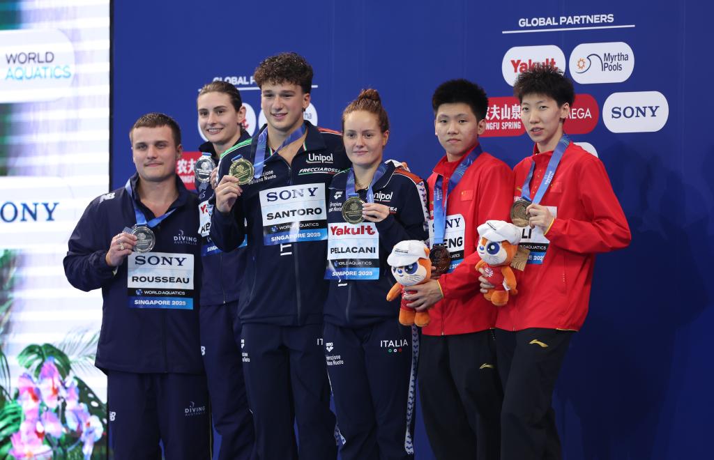 新華社新加坡7月30日電(記者岳晨星、王子江)2025年世界游泳錦標賽跳水項目30日進入第五個比賽日,在混雙3米板決賽中,意大利組合圣托羅/佩拉卡尼奪得金牌,澳大利亞組合魯索/基尼獲得銀牌,中國隊選手李亞杰/程子龍摘得銅牌。