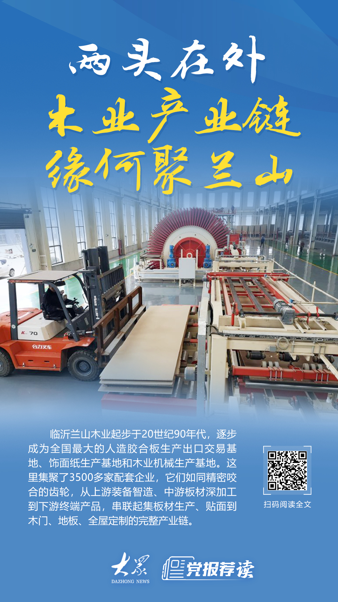 作為臨沂市中心城區(qū),蘭山區(qū)并沒有木業(yè)發(fā)展所需要的原材料,其成品也是面向全國銷售,是一個典型的“原料在外、市場在外”產業(yè)。然而去年,該區(qū)木業(yè)發(fā)展交出矚目答卷:規(guī)上木業(yè)企業(yè)占臨沂市30.9%,貢獻產值504.54億元、稅收10.53億元,膠合板年產量占全國約8%,帶動30余萬人就業(yè),在業(yè)內贏得“世界板材看中國,中國板材看蘭山”的美譽。“兩頭在外”,蘭山木業(yè)如何逆勢成長為支柱產業(yè)?