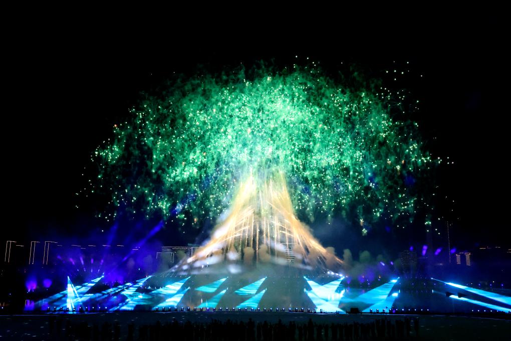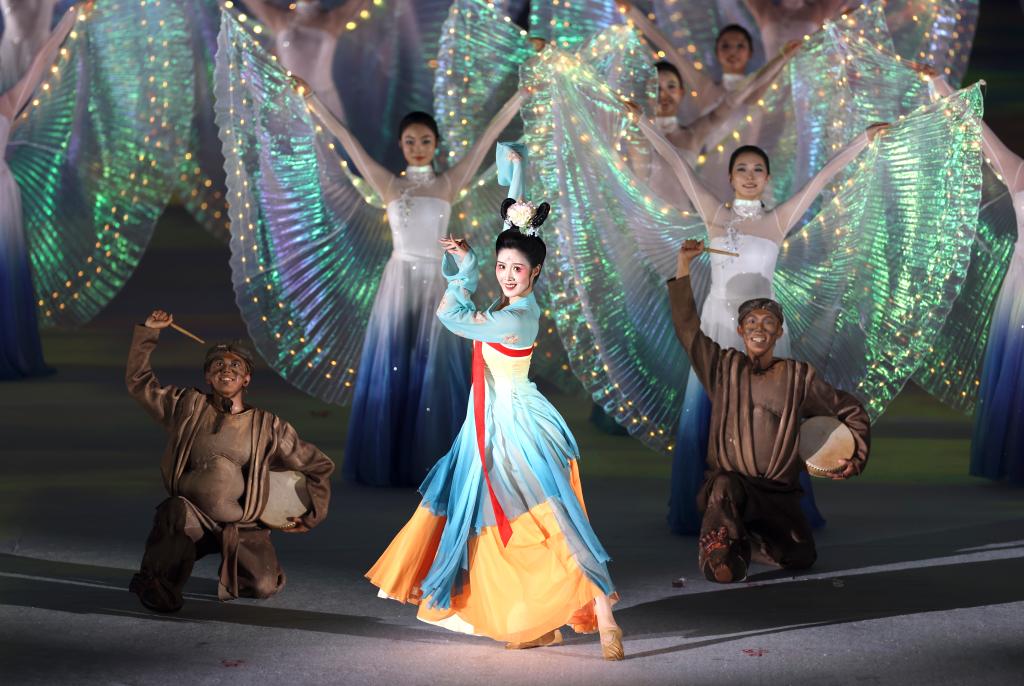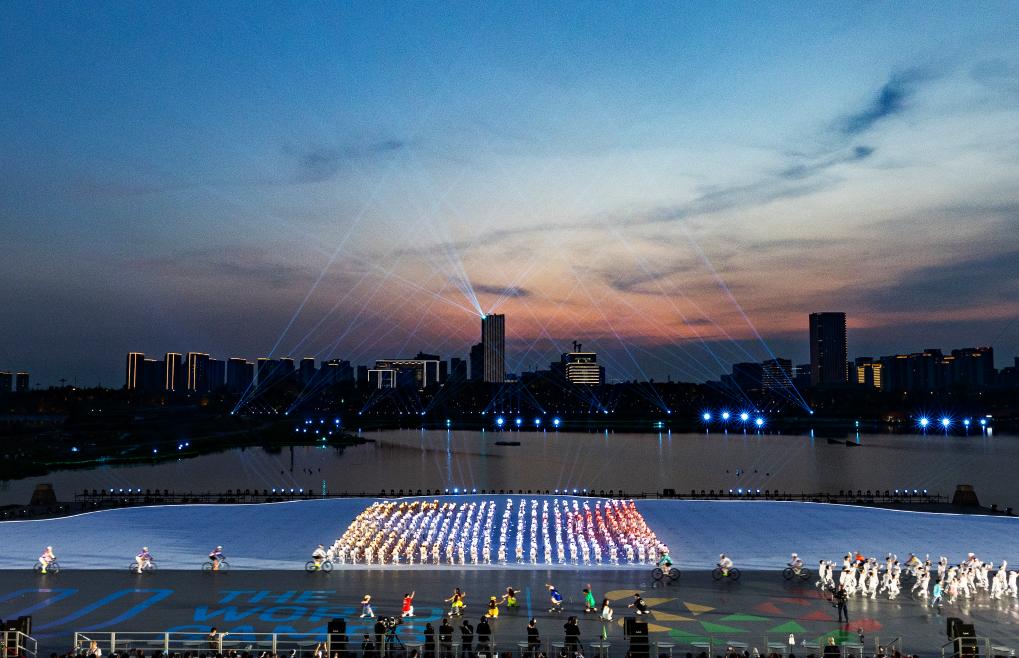 8月7日,演員在開(kāi)幕式現(xiàn)場(chǎng)表演。新華社記者 陳益宸 攝