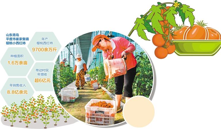 通過(guò)探索種植體系化、管理體系化、品牌體系化路徑,目前,崔家集鎮(zhèn)櫻桃小西紅柿設(shè)施栽培大棚總數(shù)發(fā)展到2600余座,種植面積1.6萬(wàn)余畝,年產(chǎn)櫻桃西紅柿9700余萬(wàn)斤,年銷(xiāo)售收入8.8億余元,帶動(dòng)村民年增收超6億元。憑借這一股紅色“柿”力,崔家集鎮(zhèn)成功獲評(píng)第十二批全國(guó)“一村一品”示范村鎮(zhèn)、2022年全國(guó)鄉(xiāng)村特色產(chǎn)業(yè)超10億元鎮(zhèn)。