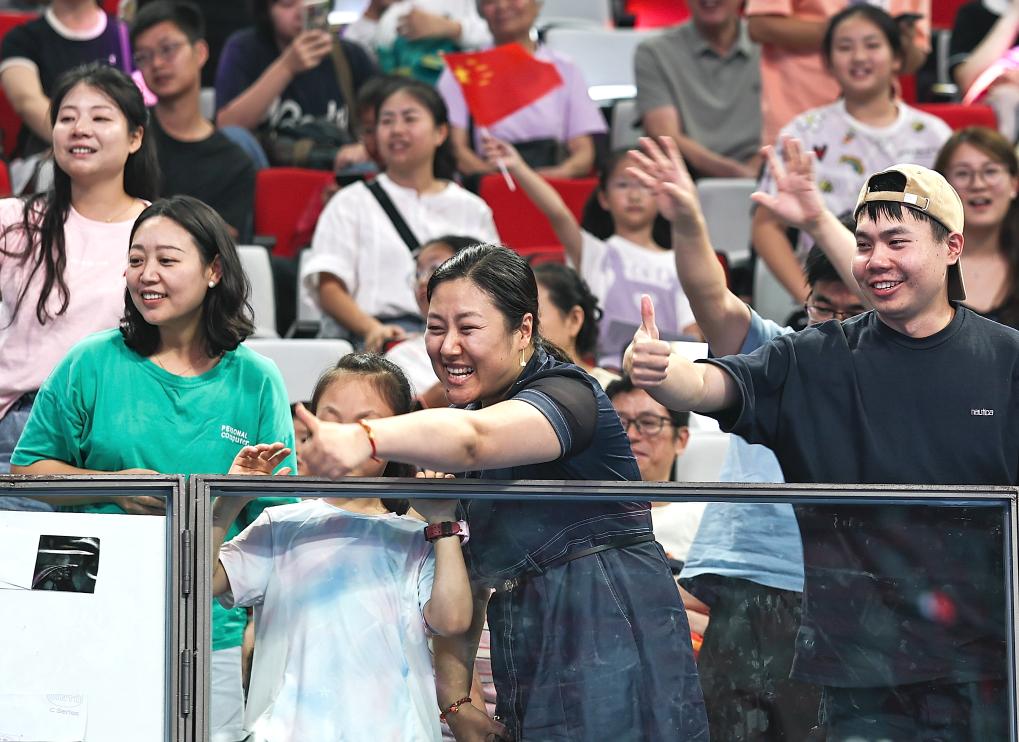8月10日,觀眾向中國組合胡譯乘/張欣欣點贊。新華社記者 孫凡越 攝