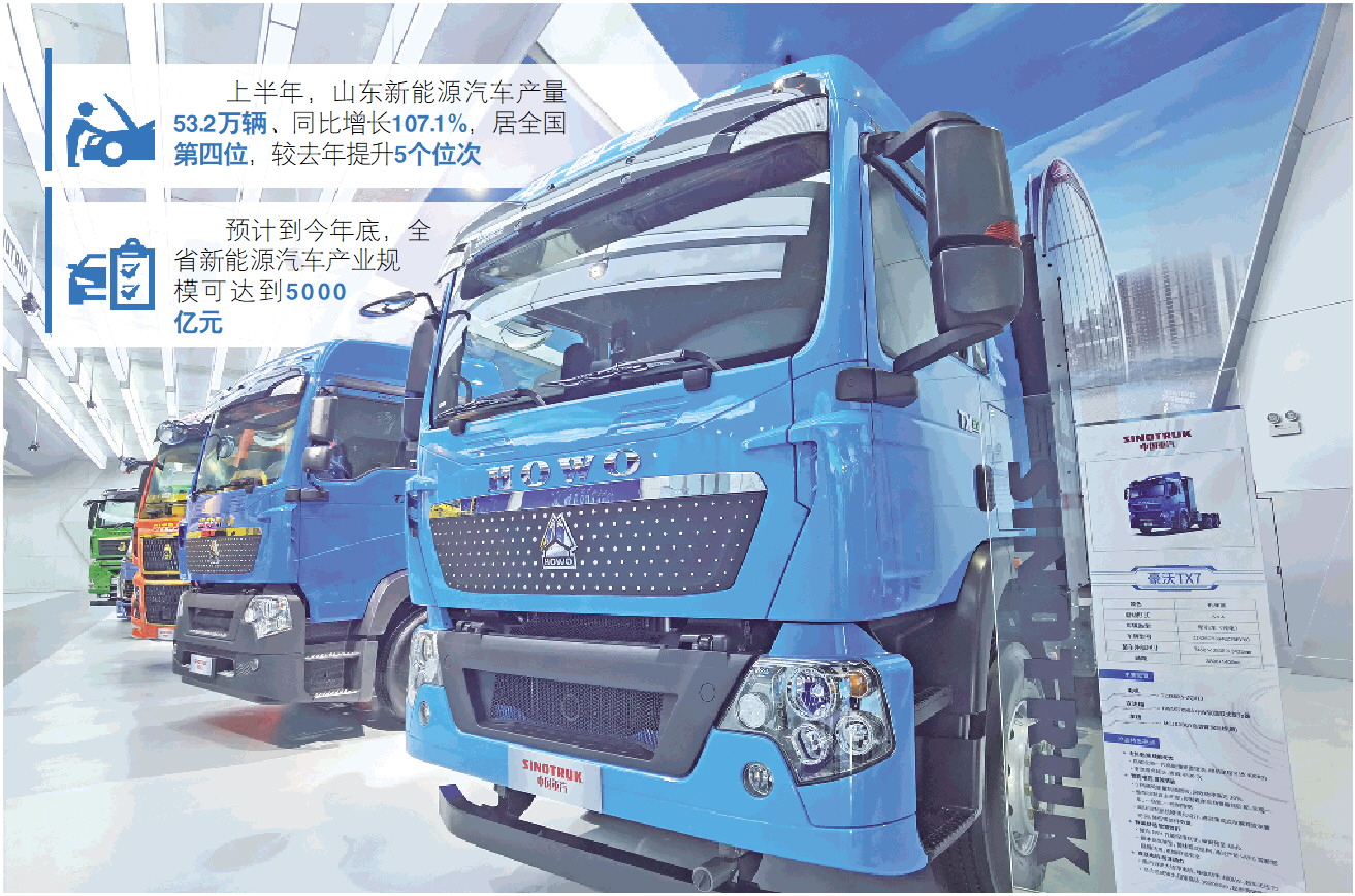 預計到今年底,全省新能源汽車產(chǎn)業(yè)規(guī)??蛇_到5000億元。作為第一輛重型汽車“駛出”的地方,山東正寫下更多從無到有、從弱到強的蛻變故事。