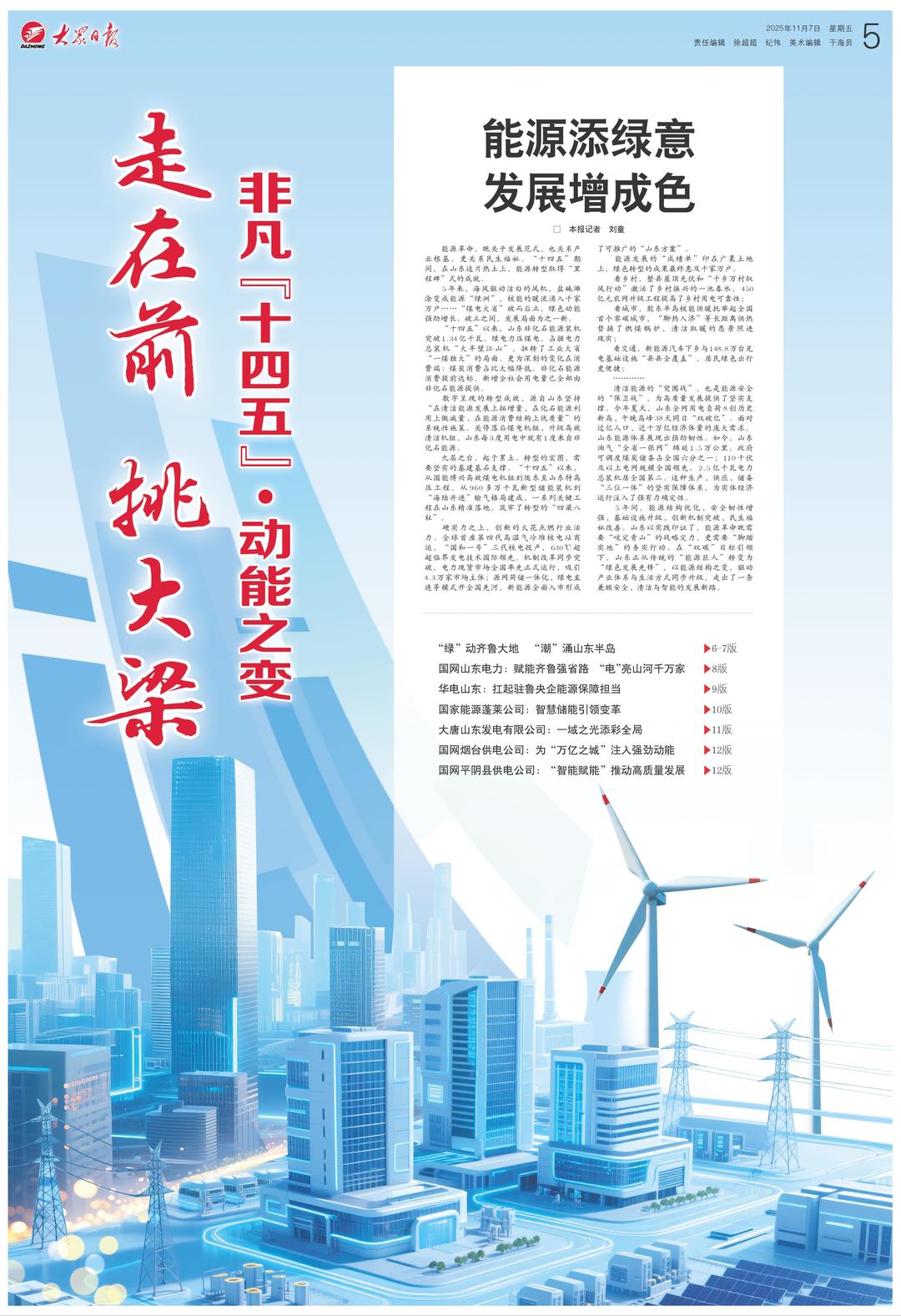 大眾日報推出“走在前 挑大梁——非凡十四五·動能之變”特別報道,看山東能源革命如何為發(fā)展增色。
