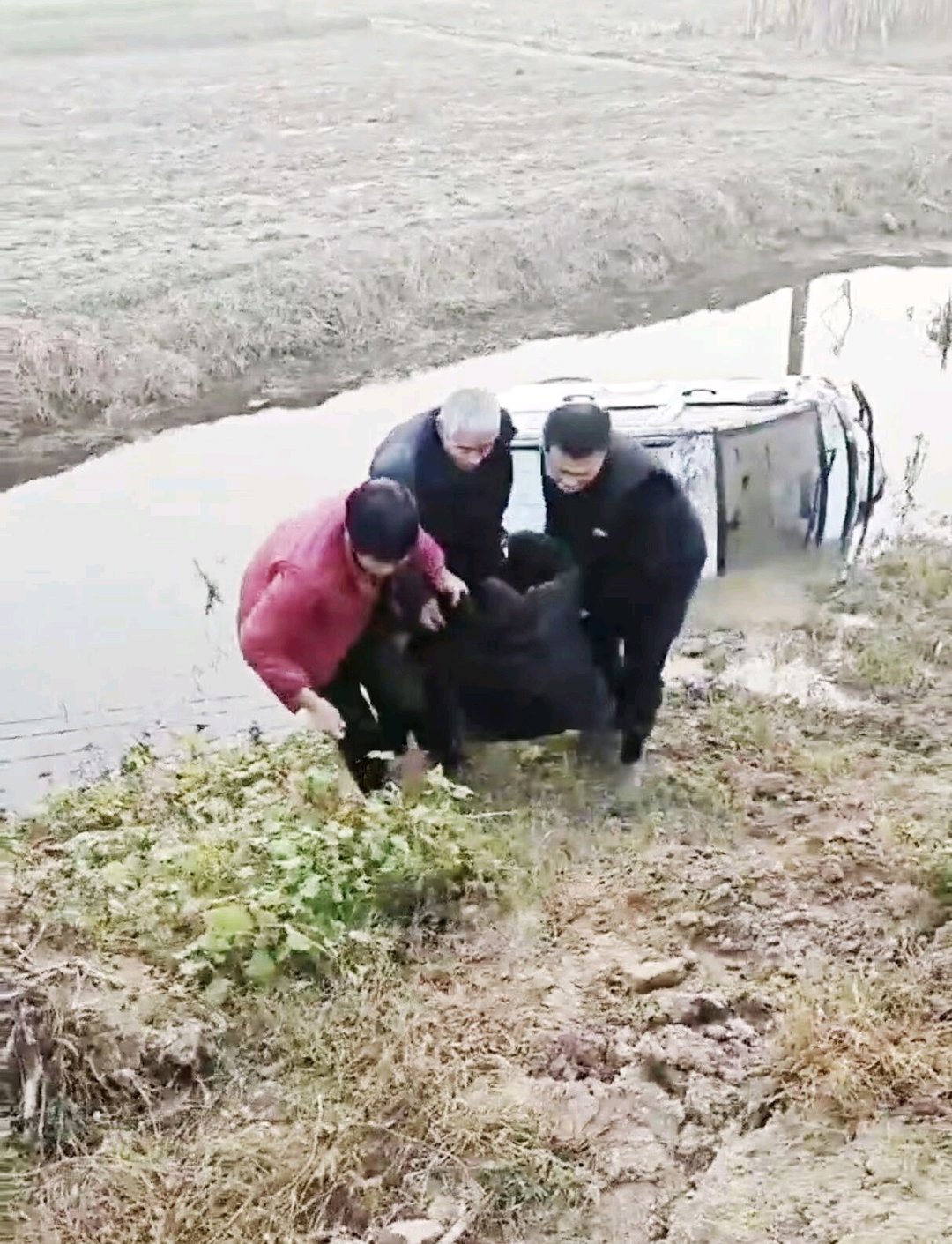 “我們村的村民朱金花滿臉焦急地沖向河邊,我心中一緊,想著肯定出事了,立即停車跑過去查看。”崔利營回憶說,走到河邊他看到,河溝中一輛電動三輪車側(cè)翻在水中,車身大半被河水浸泡,車內(nèi)一名老人被困動彈不得。岸邊兩位老人急得連聲呼喊,卻因年邁無力施救,現(xiàn)場情況十分危急。