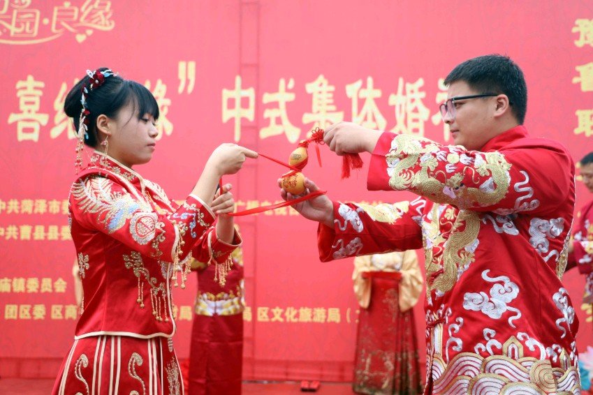 9月27日,山東省菏澤市曹縣與河南省商丘市梁園區(qū)同步聯(lián)動,舉辦“曹韻新風·花好月圓”2025年新時代文明實踐中式集體婚禮。