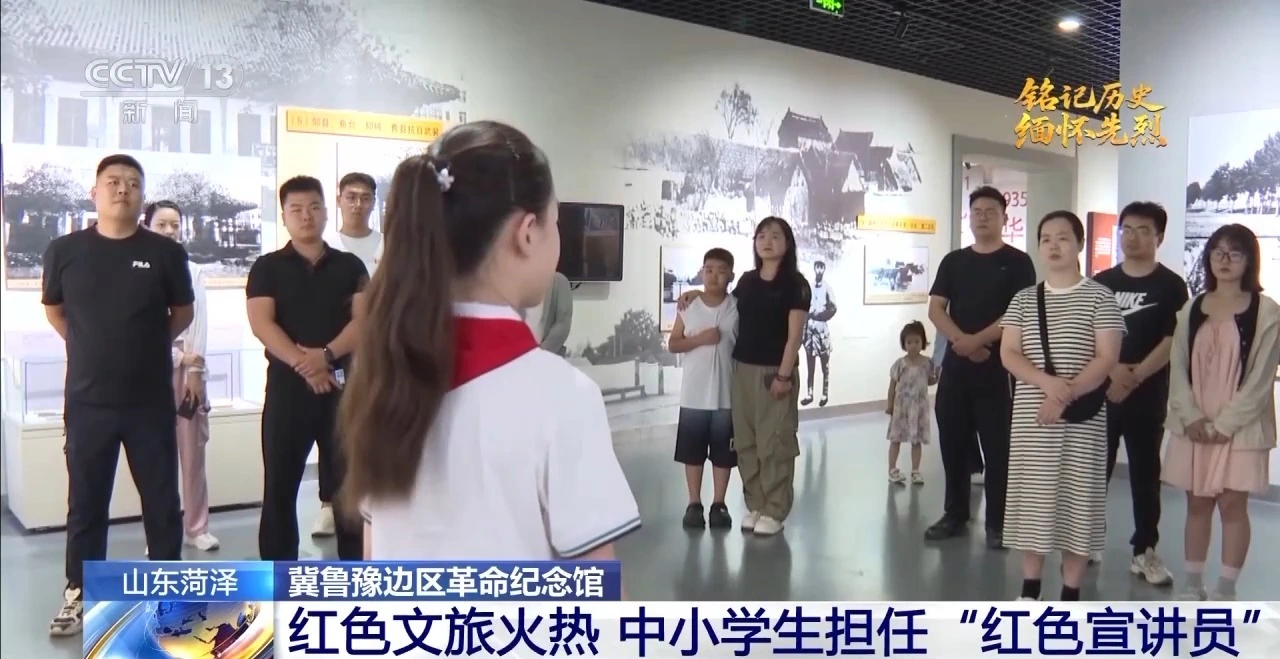 正值暑假,這里的紅色文旅十分火熱。據(jù)統(tǒng)計(jì),2024年,冀魯豫邊區(qū)革命紀(jì)念館全年共接待游客超86萬人次,開展紅色教育活動(dòng)覆蓋中小學(xué)生5萬多人次。菏澤市委講師團(tuán)利用暑假時(shí)間,培訓(xùn)中小學(xué)生擔(dān)任“紅色宣講員”,可以讓孩子們?cè)谥v述革命歷史的同時(shí),潛移默化接受紅色教育。