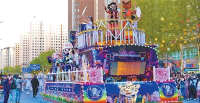 傍晚時(shí)分,青海西寧市城北區(qū)豹街開啟花車巡游。記者 曹繼煒 攝