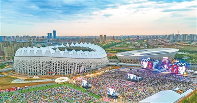 安徽省蕪湖市峨山鎮(zhèn)的繁昌人民體育公園內(nèi),人們?cè)谟^看音樂節(jié)表演。?肖本祥攝(人民視覺)
