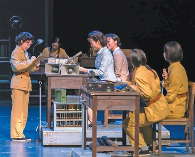 《紅色的起點(diǎn)》以獨(dú)特的敘事手法和生動的舞臺表現(xiàn),再現(xiàn)了中國共產(chǎn)黨誕生的偉大歷程?!度秊常且灰埂芬运囆g(shù)化手法生動再現(xiàn)了“三灣改編”這一歷史事件,闡釋了“黨指揮槍”“支部建在連上”“官兵平等”?!惰F流東進(jìn)》以小說《最后的電波》為藍(lán)本,將一段鮮為人知的新四軍通信兵戰(zhàn)斗史搬上舞臺,讓觀眾得以了解戰(zhàn)士們的平凡與偉大、熱血與忠誠?!犊箲?zhàn)中的文藝》再現(xiàn)胸懷愛國之志的文藝家們的求索、掙扎、奮斗,尋找文藝救國路徑的艱難歷程。該劇通過投影技術(shù),將大量的歷史影像資料融入戲劇表演中,讓觀眾仿佛置身于那個波瀾壯闊的年代?!吨辈ラ_國大典》情節(jié)緊張、扣人心弦,舞美設(shè)計(jì)運(yùn)用簡潔視覺裝置與即時(shí)拍攝技術(shù),將宏大歷史背景與緊張敘事融合,講述開國大典背后的故事。