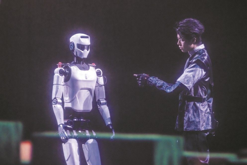 這是發(fā)生在中國大戲院長三角城市戲劇節(jié)中的最“科幻”一幕,國內(nèi)領(lǐng)先的機器人走出實驗室和展廳,以接地氣、親和的方式來到普通人身邊。面對這樣的場景,人們不再那么陌生——2025春晚上,張藝謀導(dǎo)演的《秧BOT》讓人形機器人略顯滑稽地扭起秧歌;上半年,半程馬拉松也迎來人形機器人“跌跌撞撞”的身影?!拔覀冊谔剿饕环N可能性,試著模擬發(fā)生在未來的場景?!薄毒尬镏恰匪囆g(shù)總監(jiān)、上海戲劇學(xué)院藝術(shù)科技與管理學(xué)院副院長沈倩對記者說,“無論對于機器人還是演藝產(chǎn)業(yè)來說,都具有破圈的意義?!闭\然,機器人仍在亦步亦趨地努力跟上人類的節(jié)奏,但其不斷前進(jìn)的腳步已經(jīng)令人激動。面對“人機共生”的時代命題,上海邁出了全國舞臺實踐的第一步。