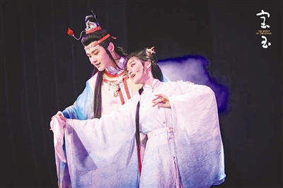 作為經(jīng)典IP改編的原創(chuàng)音樂劇,《寶玉》從創(chuàng)作過程到成型演出,持續(xù)引起外界廣泛關(guān)注和熱烈反響?!秾氂瘛氛缙涿?,以“寶玉”視角向眾人鋪開大觀園的離合悲歡。在有緣人對(duì)寶玉命運(yùn)的循循引領(lǐng)下,逐一展露寶玉的覺醒、黛玉的哀婉風(fēng)骨、寶釵的隱忍綿長、王熙鳳的潑辣悲愴等人物特質(zhì)。全劇以歌入情,以舞動(dòng)人,為觀眾呈現(xiàn)了一個(gè)紅樓獨(dú)特的音樂劇表達(dá)。對(duì)于耳熟能詳?shù)慕?jīng)典片段“寶黛共讀西廂”“黛玉葬花”“金玉良緣大婚”等,則通過“片段式敘事”與“閃回蒙太奇”手法串聯(lián)而起。