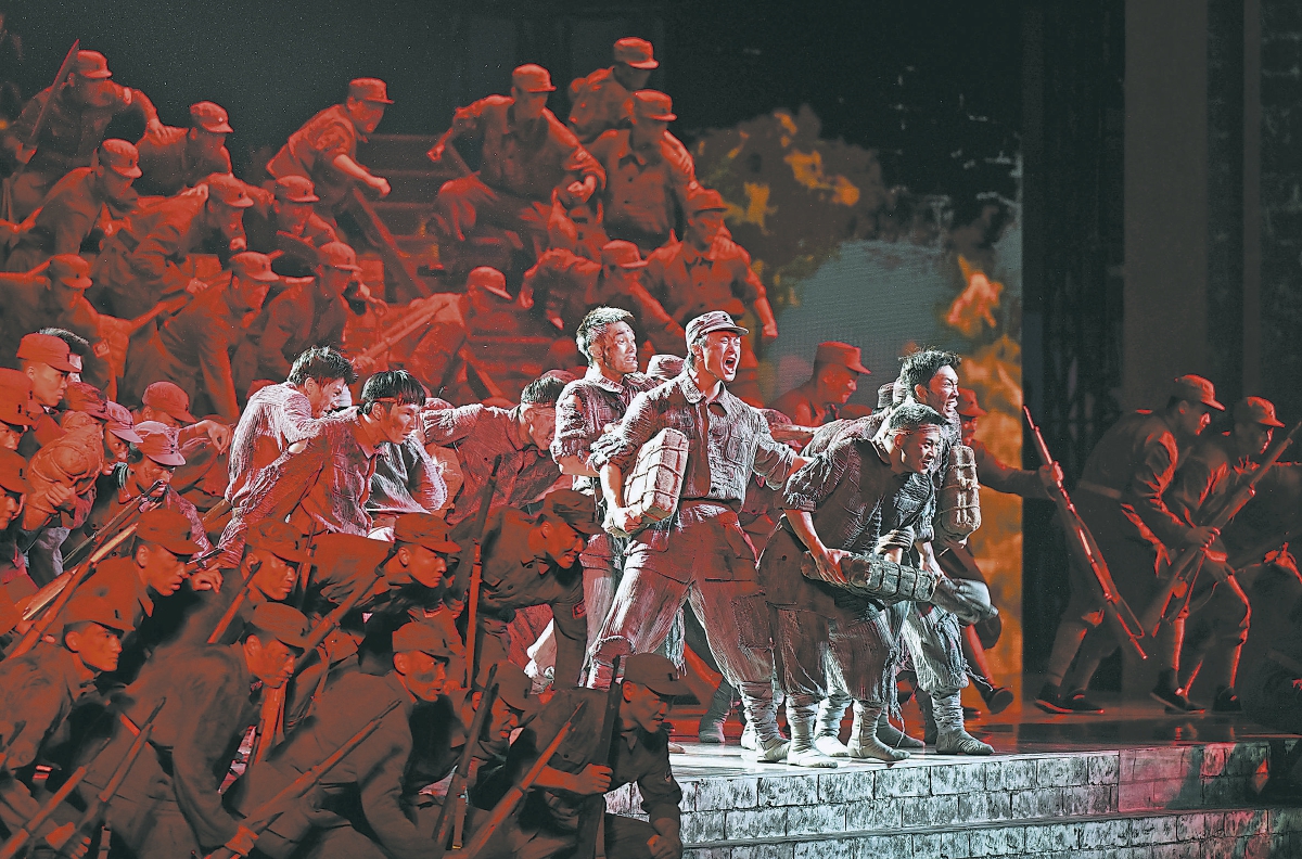 《正義必勝》主創(chuàng)團隊雖然年輕,但都有多次參加大型活動的經(jīng)驗以及豐富的作品履歷。在紀念中國人民抗日戰(zhàn)爭暨世界反法西斯戰(zhàn)爭勝利80周年的時代節(jié)點,回望歷史、致敬經(jīng)典是必不可少的一環(huán)。音樂總監(jiān)楊帆介紹,《正義必勝》中,經(jīng)典與新作的比例大致為7∶3,從開篇時《松花江上》的沉痛追憶、《黃河大合唱》的振奮鼓舞、老詞新曲再作詮釋的《露營之歌》,到地域特色濃郁的陜甘寧民歌《東方紅》《高樓萬丈平地起》,從接連唱響的《八路軍軍歌》《瓊崖獨立隊之歌》《地道戰(zhàn)》《游擊隊歌》《彈起我心愛的土琵琶》《在太行山上》,到真情縈繞的《我愛你,中國》,銘刻著民族記憶的旋律一直都在回響,最終,晚會在《勢不可擋》《命運與共》兩首新作的強音中落幕,發(fā)出對時代、對世界的深情關懷。