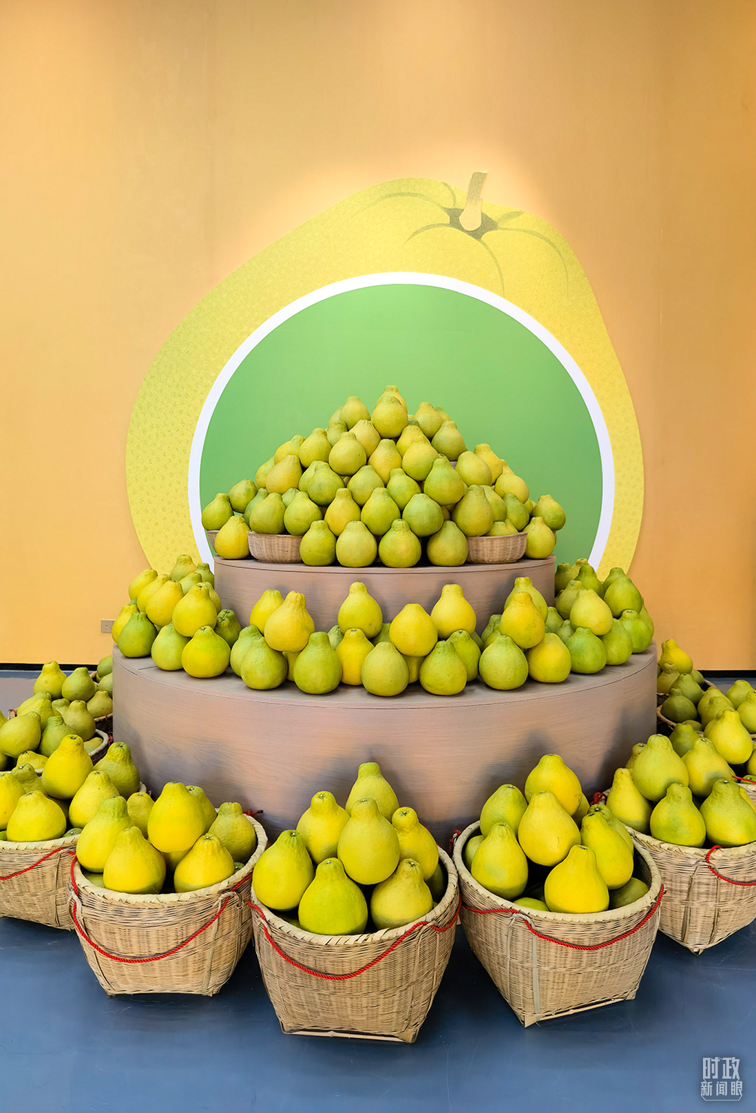 △梅州金柚,果形似梨,果肉晶瑩,肉質(zhì)脆嫩化渣、清甜爽口。(總臺(tái)央視記者石偉明、趙化拍攝)