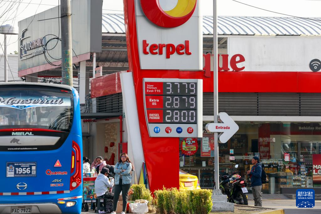 這是9月16日在厄瓜多爾首都基多拍攝的一處加油站的燃油價(jià)格顯示屏。新華社發(fā)(里卡多·蘭德塔攝)
