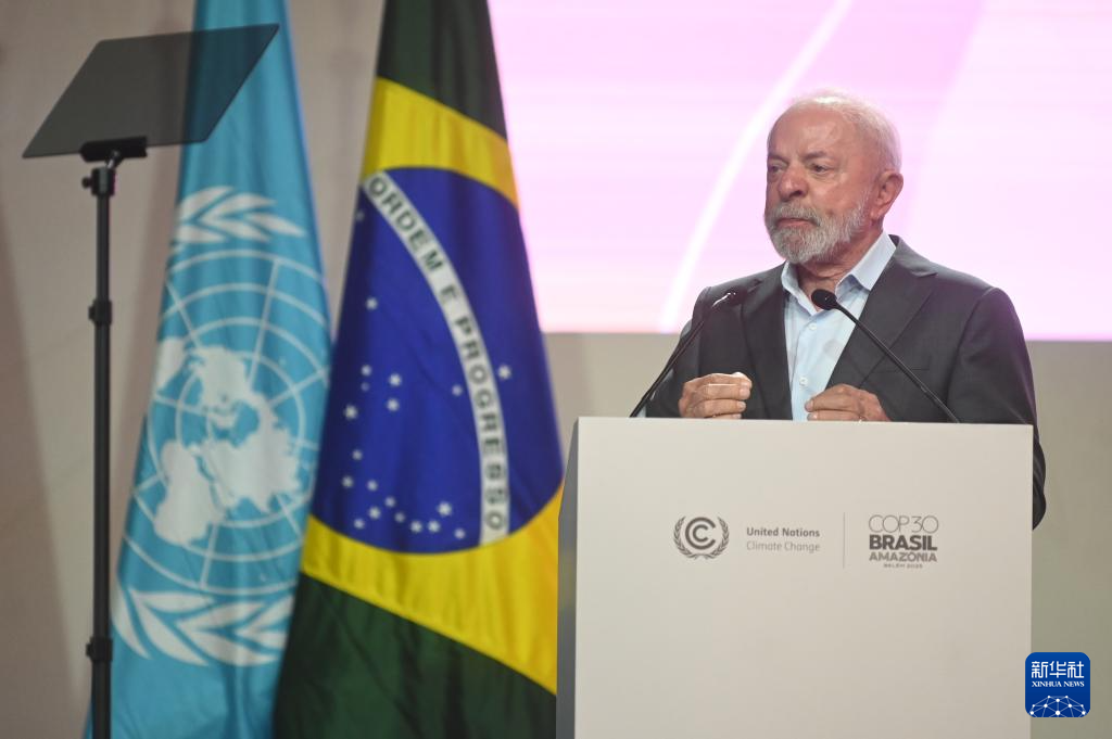 11月10日,巴西總統(tǒng)盧拉在巴西北部城市貝倫舉行的《聯(lián)合國氣候變化框架公約》第三十次締約方大會(huì)(COP30)開幕式上發(fā)表講話。新華社發(fā)(盧西奧·塔沃拉 攝)