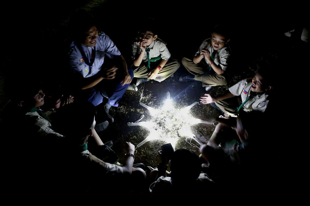 2019年3月30日,在菲律賓馬卡蒂市,孩子們參與“地球一小時”活動。新華社發(fā)(魯埃勒·烏馬利攝)