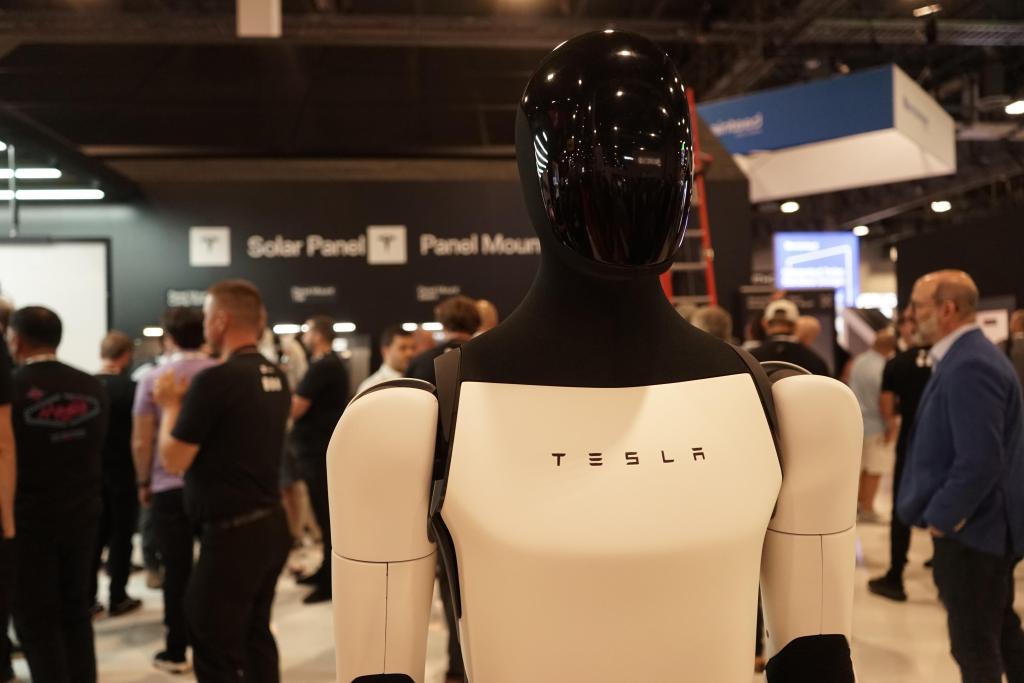 這是9月9日在美國(guó)拉斯維加斯舉辦的北美最大清潔能源展RE+展會(huì)上拍攝的特斯拉人形機(jī)器人。新華社發(fā)(曾慧攝)